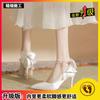 French White High Heels Women's 2025 Autumn Stiletto Wedding Shoes with Skirt Satin Wedding Shoes Bow Pointed Single Shoes