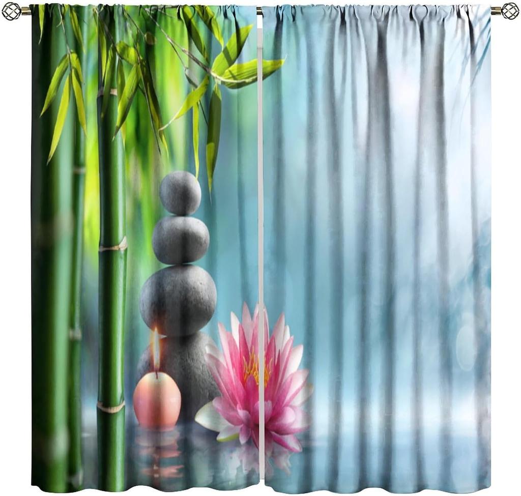 Garden Zen Stone Blackout Curtains Zen Stones Spa Theme Green Bamboo Pink Flower Candle Window Drapes for Bedroom Living Room