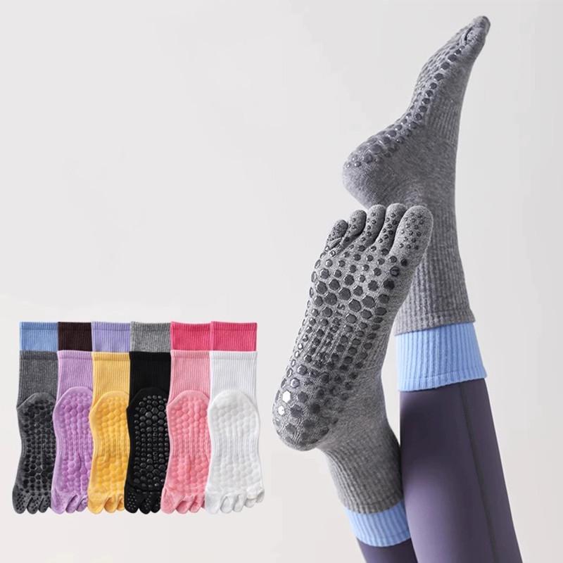 Five-finger Yoga Socks Breathable Cotton Five Toes Pilates Socks Silicone Non-slip Professional Indoor Workout Gym Sports Socks