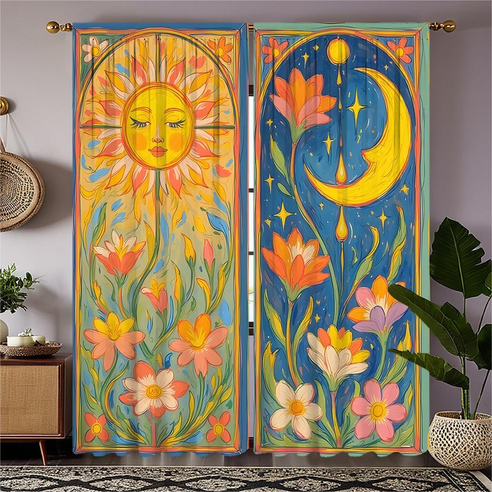 2-piece Set of High-definition Digital Printed curtainColorful Floral Sun Moon Abstract Style Cross Border E-commerce curtainHom