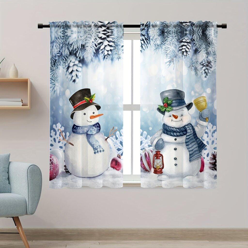 2pcs Champion Snowman Printed Transparent Curtains with Rod Bag Design Privacy Protection Suitable for Decoration In Various S