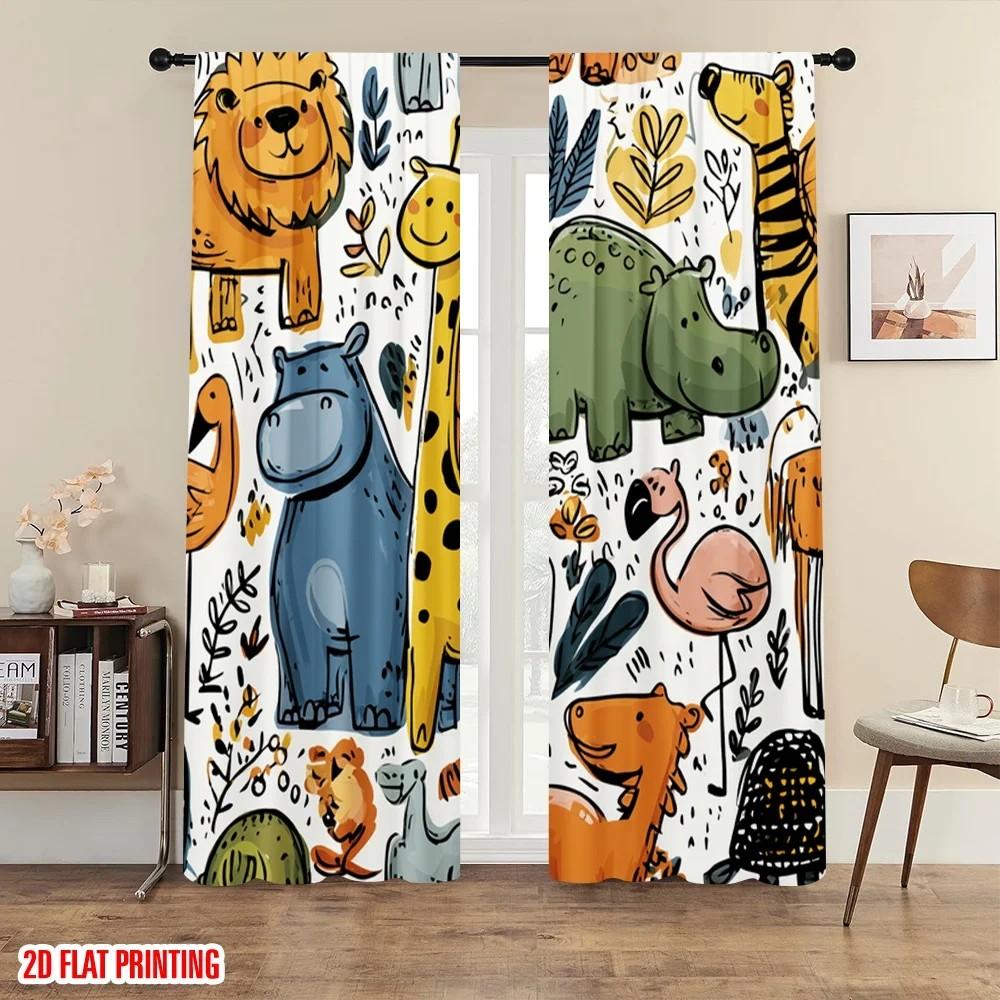 2pcs Cartoonish Animal Pattern Curtain Design Blackout Curtain Polyester Kids Room Window Decor Home Decor Rod Pocket Curta