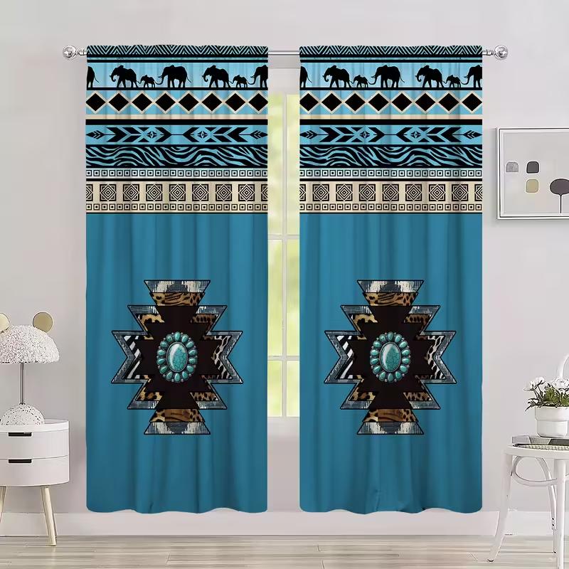 2PCS Hu Qing Ethnic Printed Curtains Pole Bag Polyester Material Design Bedroom Home Decoration