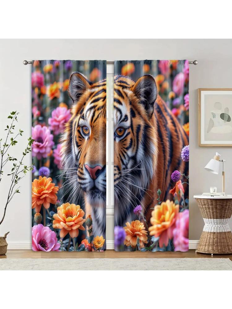 2pcs Curtain Popular Print Tiger Versatile Polyester (without Rod) Art Deco Festive Perfect for Living Room Bedroom & Home