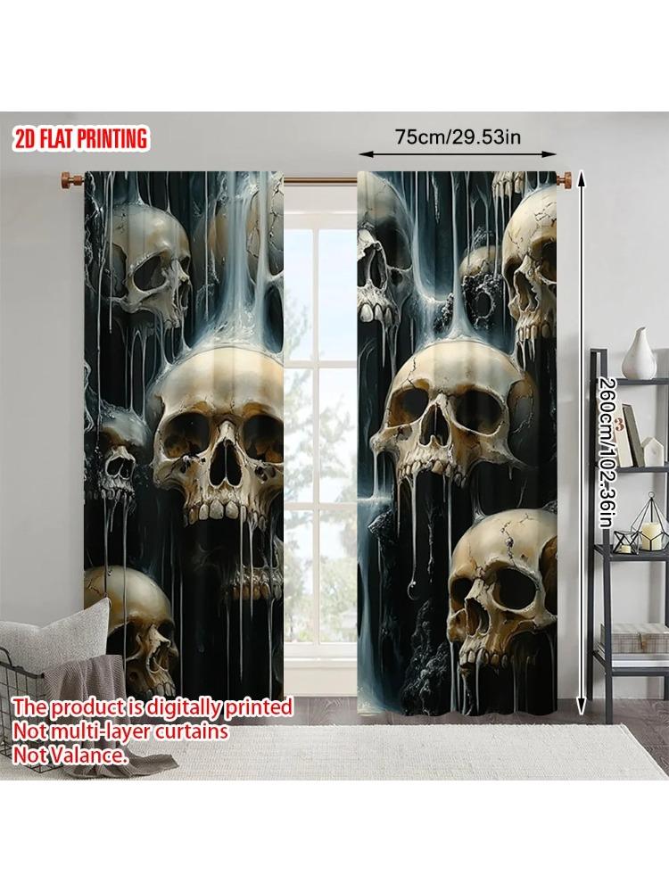2pcs 2D Plane Printing Pattern Curtains Skull Polyester Woven (without Rod) Outdoor Decorations for Study Living Room Kitchen