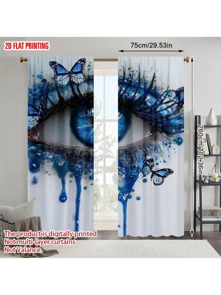 2pcs Plane Printing Curtains Beautiful Eyes 100% Polyester (without Rod) Holiday Ldeal for Bedroom & Various Living Spaces