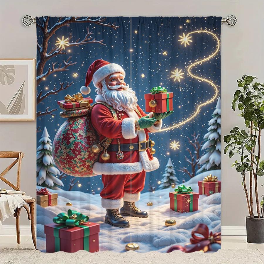 2PCS- Christmas Santa Claus Christmas Tree Pattern Printed Curtains Christmas Decorations Home Decorations Room Decorations