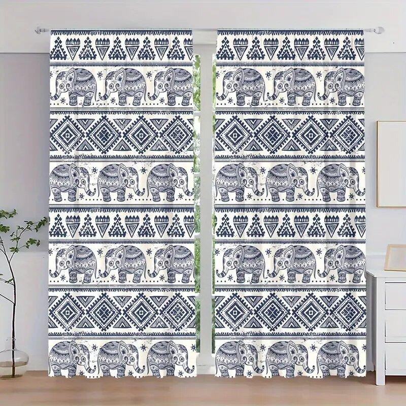 Bohemian Elephant Pattern Printed Curtains Christmas Decorations Bedroom and Living Room Home Decoration Room Decoration