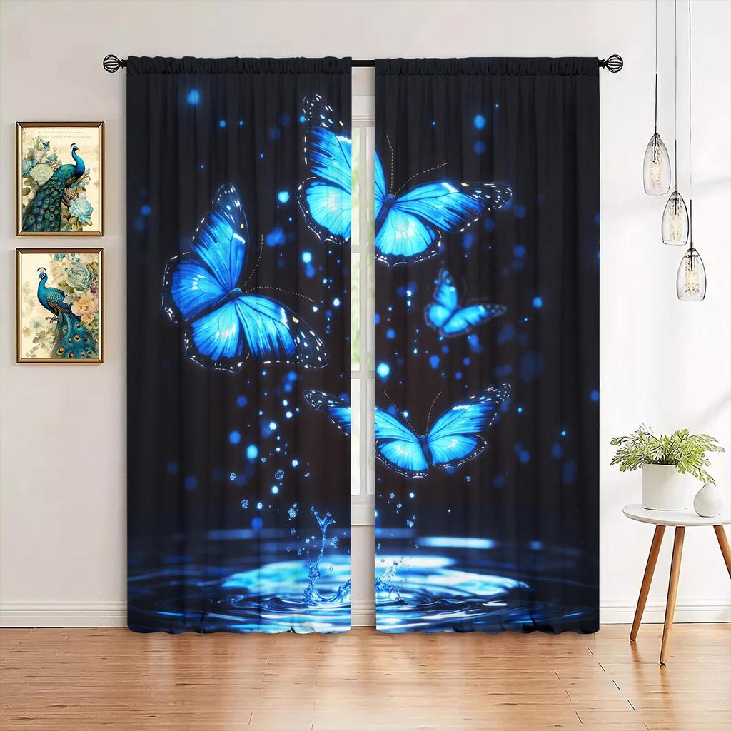 2pcs Dreamy Blue Butterfly Playing In The Water Curtains Shade and Privacy Protection Suitable for Decorating Various Rooms