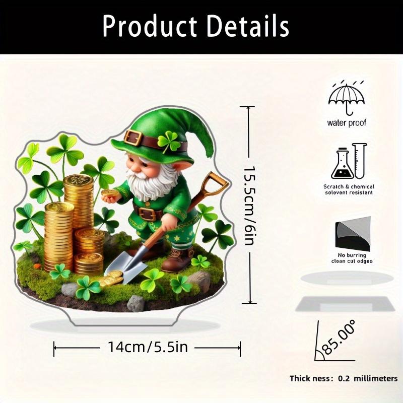 1pc Clover Green Gnome Creative Desktop Decoration, Acrylic Printed One-Piece L-Shaped Design, Suitable for Home, Farmhouse, Living Room, Bedroom