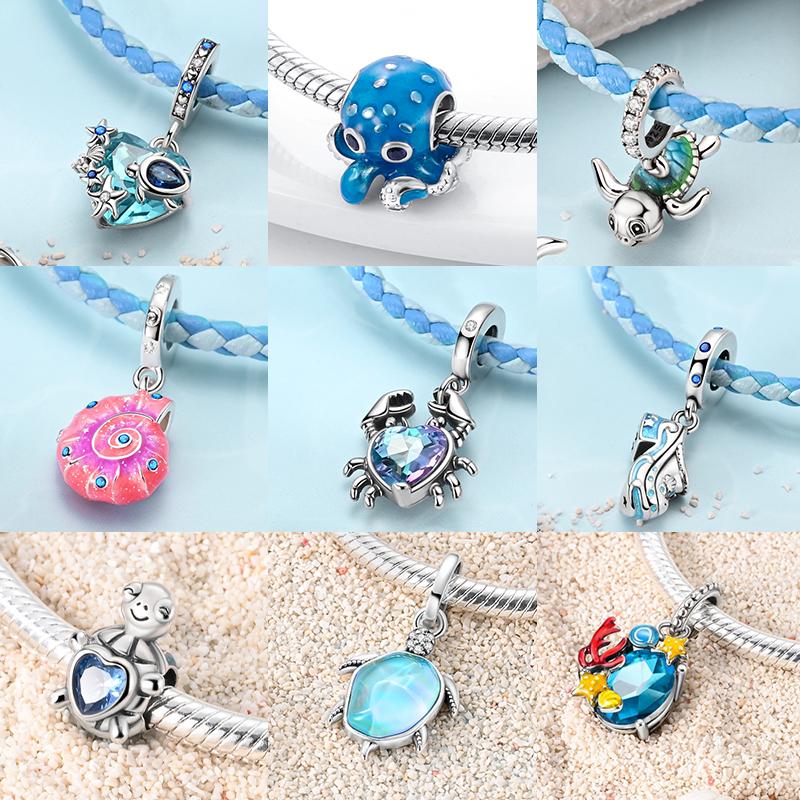 Original Copper Charm Summer Ocean Crab Sea Turtle Octopus Bead Fit Bracelet Pendant Diy Woman Jewelry