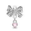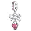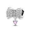 Copper Bow Charms Copper Pink Heart-Shaped Bow Pendants Charms Beads Fit Original Bangle Bracelets Diy Jewelry