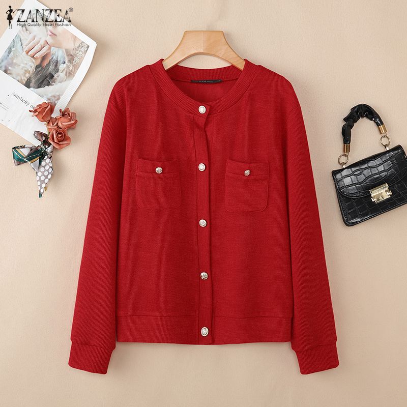 ZANZEA Women Casual Round Neck Loose Long Sleeve Thin Cardigan Blouse