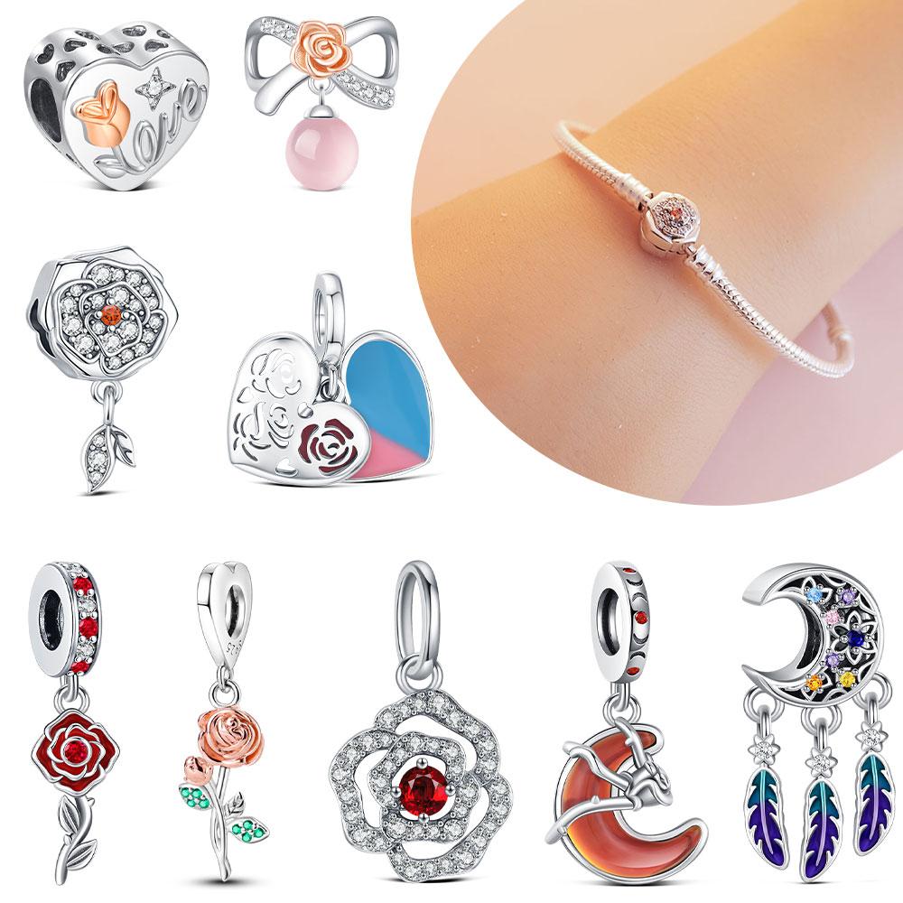 Elegant Rose Charm Fit Bracelet Diy For Women Daily Wear Romantic Fashion Flower Pendant Love Gift Originalcopper Bead