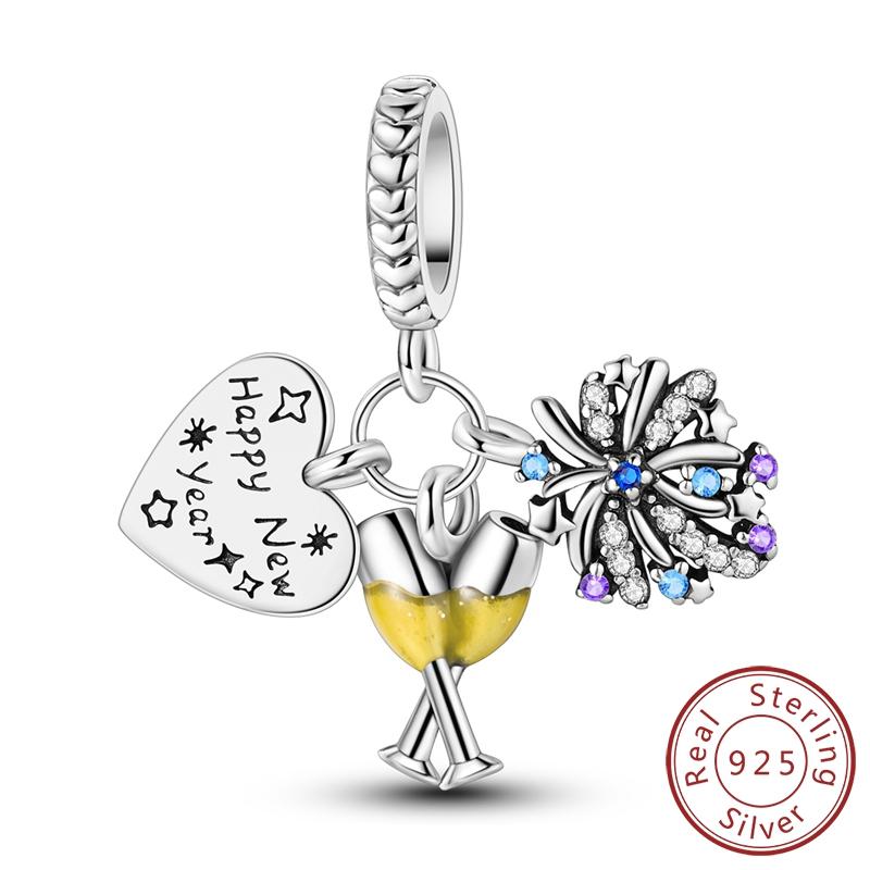 Charms Original Copper New Year Champagne Pendant Heart Shape Beads Fit Bracelet Women Jewelry Diy Gift Accessory