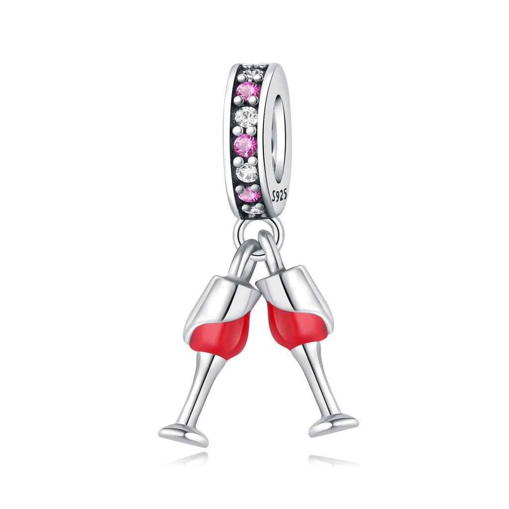 Original Copper Charms Luxury Red Wine Toasting Pendant Beads Fit Bracelet Diy Women Making Delicate Gift