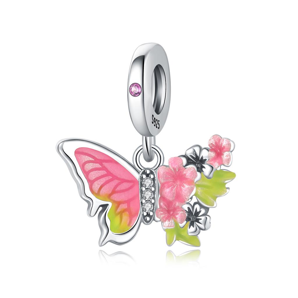 Beads Copper Charms Original Pink Butterfly Insect Pendant Beads Fit Bracelet Jewelry Diy Women Fine Gift Accessory