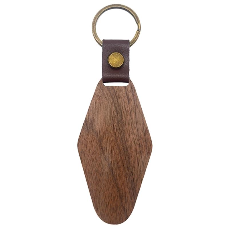 Solid Wood Keychain Wooden Key Chain with Rings Vintage Ornament for Men Women