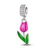 Pink Tulip Plant Beads Copper Original Beads Fit Originalcharms Bracelet Beads Jewelry Diy Gifts For Women