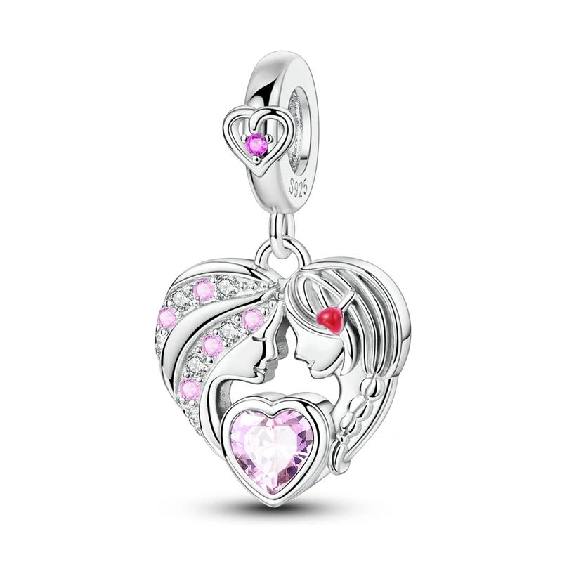 Charms Platapink Mother-Daughter Heart-Shaped Beads Fit Originalbracelets Charms For Women Jewelry Diy Making Gifts