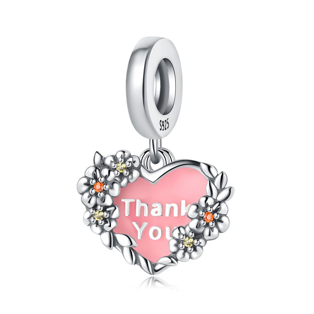 Real Copper Pink Heart-Shaped Flower Pendant Beads Fit Original Bracelet For Women Jewelry Gifts Accessory