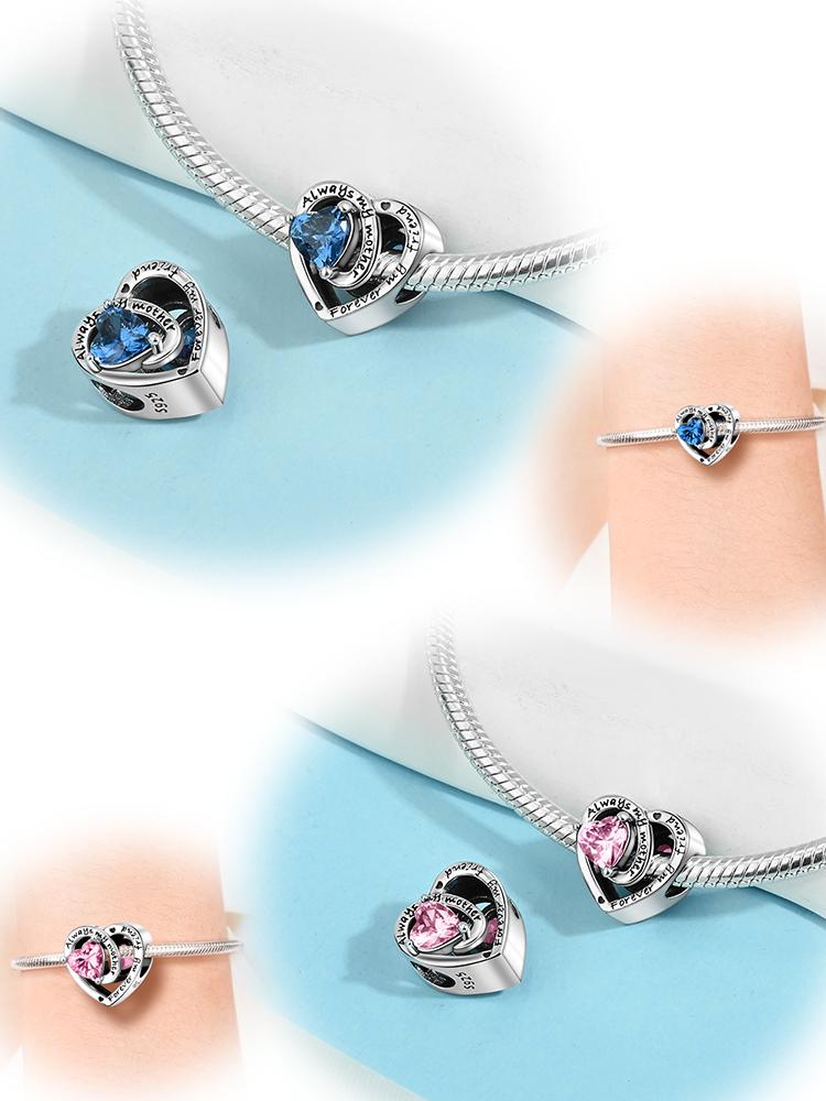 Love Heart Birthstone Beads Birthday Gift Copper Plated For Charms Copper Plated Original Bracelet For Jewelry Making