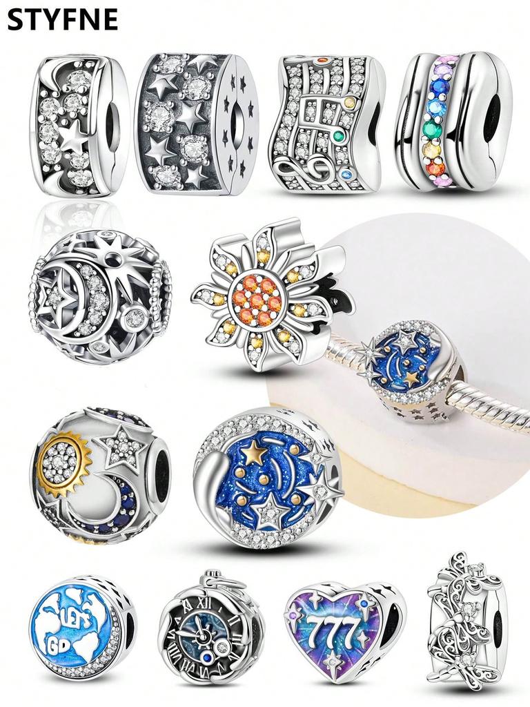 Charms Plata Stars And Moon Bead Clips And Spacers Charm Copper Plated Fit Charms Original Bracelet For Jewelry Making Diy Charm