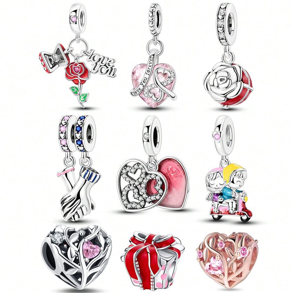 Valentine'S Day Love Roses Beads Charm Copper Plated Fit Charms Copperoriginal Bracelet For Jewelry Making Diy Charm
