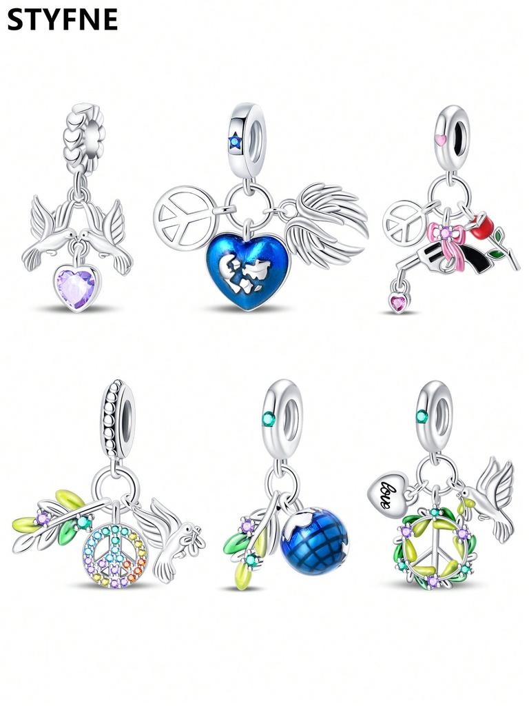 Charms Plata Peace Dove Love Rose Beads Charm Copper Plated Fit Charms Copperoriginal Bracelet For Jewelry Making Diy Charm