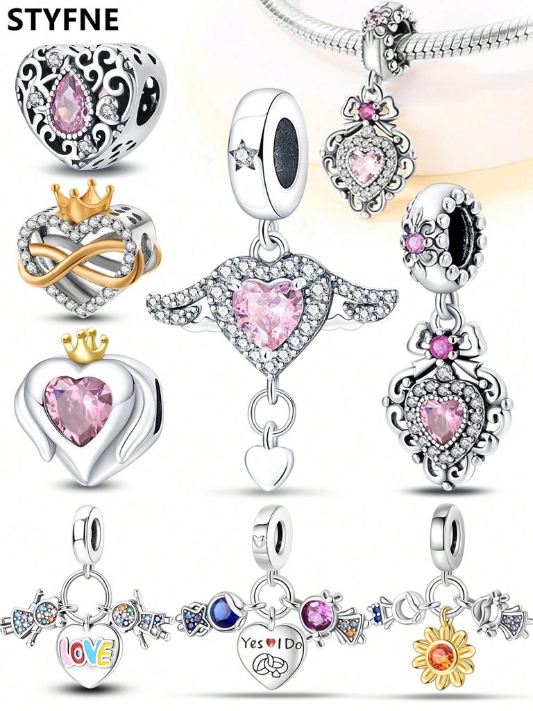 Charms Plata Copper Colors Valentine'S Day Love Crown Beads Charm Pendant For Original Bracelet For Women Diy Jewelry Love Gift