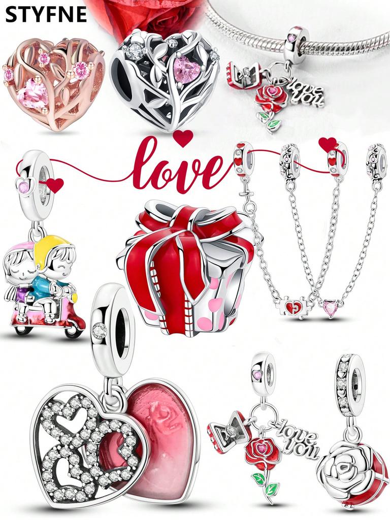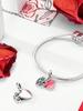 Charms Plata Copper Colors Valentine'S Day Pink Heart Beads Charm Pendant For Original Bracelet For Women Diy Jewelry Love Gift