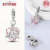 Copper Pink Heart-Shape Forever Love Charms Colorful Zircon Beads Pendant Fit Original Bracelet Diy Jewelry Gifts For Women