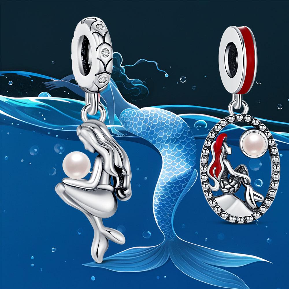 New Copper Mermaid Charm Ocean Glass Beads Pendant Fit Original Bracelet For Women Diy Gift Making Jewelrygift