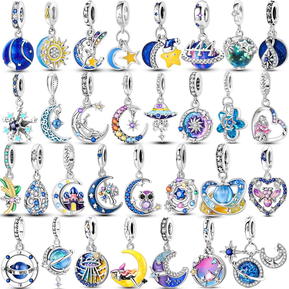 Charms Copper Moon Star Night Sky Galaxy Celestial Dangle Beads Fit Snake Chain Bracelet Necklace Women Diy Jewelry