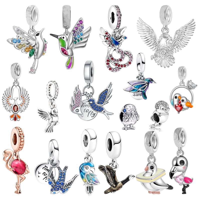 Pink Murano Glass Flamingo Hummingbird Bald Eagle Swallow Phoenix Charm Beads Fit Original Bracelets Diy Jewelry Gifts
