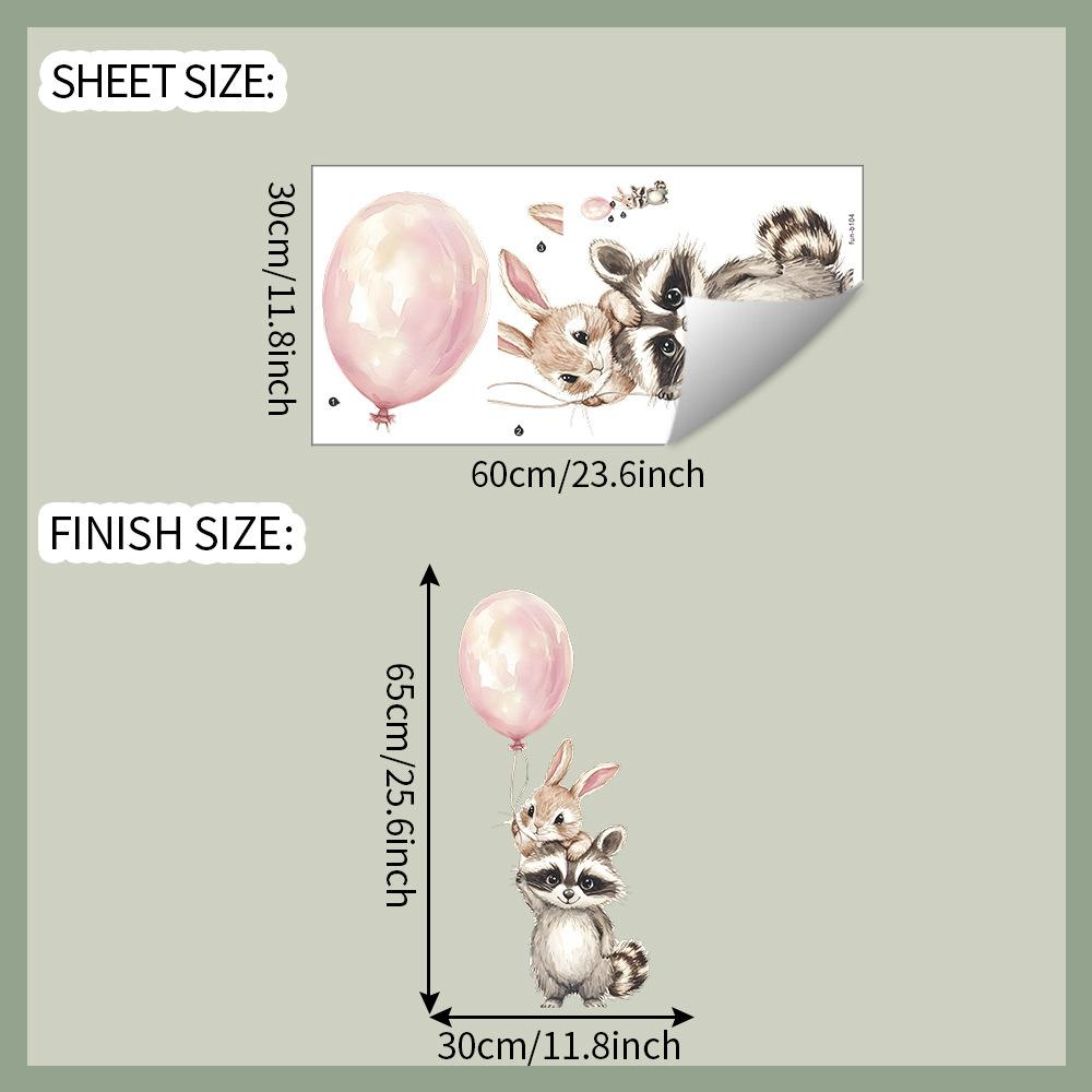 Cartoon Raccoon and Bunny with Balloons Wall Stickers, Playful Friends Wall Art for Kids Room, Bedroom and Living Room Decor