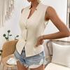 Women's Fashion Vest Casual Solid Sleeveless V-Neck Button Office Tops for Women Elegant Summer Womens Clothing Tops Lady