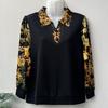 Spring Women's Polo Collar Printed T-Shirt Loose Long-Sleeve Pullover Plus-Size Blouse