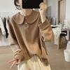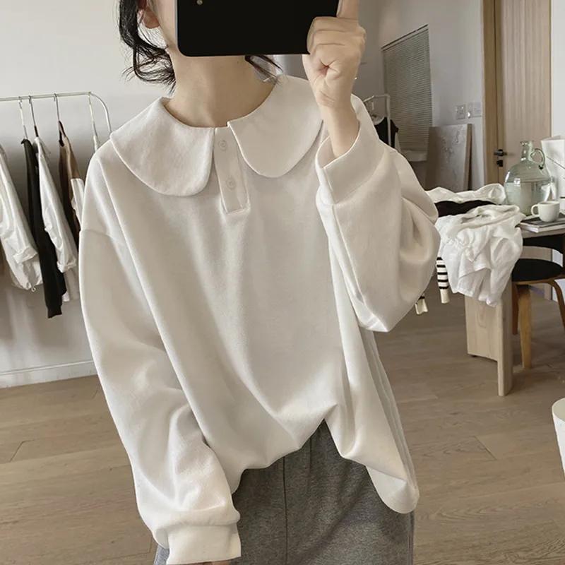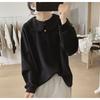 Baby Doll Collar Sweatshirt Jacket Women's New Autumn Loose French Solid Color Button Stitching Versatile Pullover Top