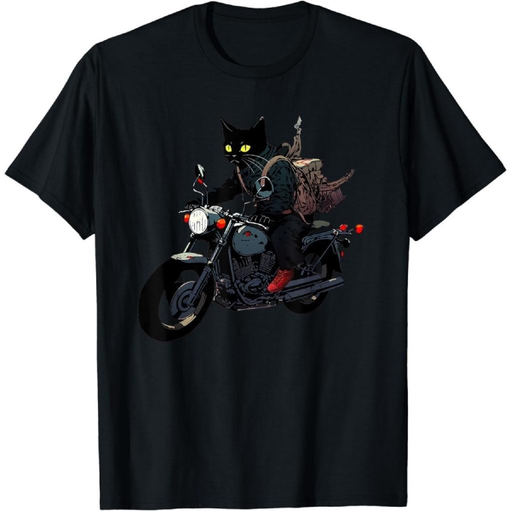 Hopfen Black Cat Biker Funny Pet Motorcycle T-Shirt