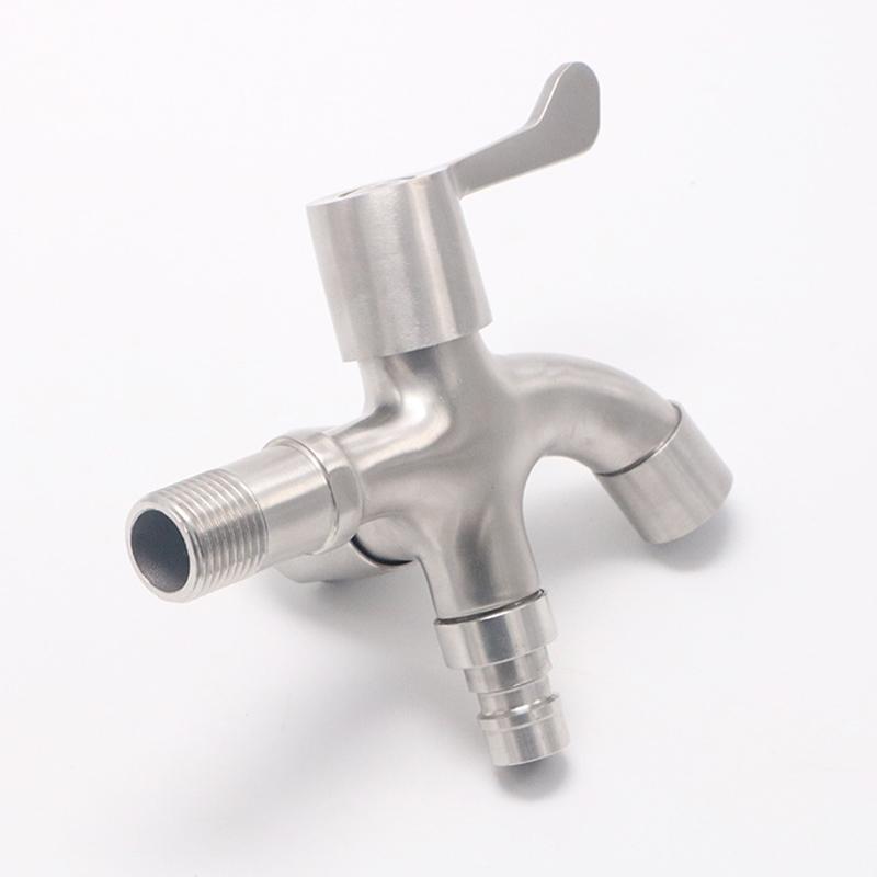 1PC G1/2' Wall Mounted 304 Stainless Steel Bibcock Single Cold Faucet One In Two Out Dual-Use Mop Pool Tap for Washing Machine