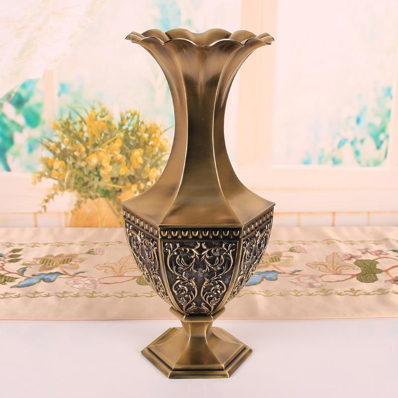 European Retro Hexagonal Vase Ornament Art Relief Vase Handicraft Home Living Room Decoration