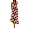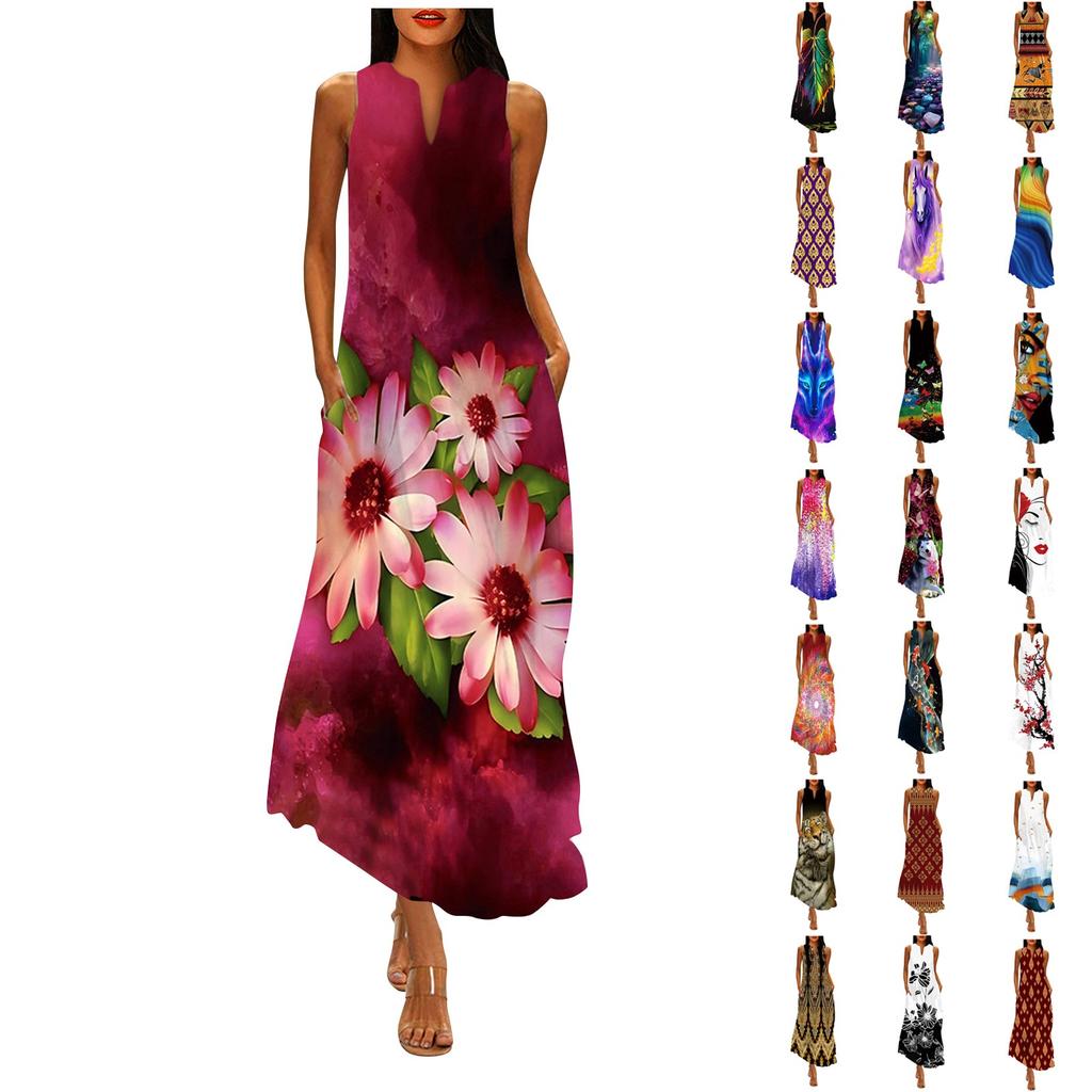 Women's Fashion Casual Retro Print V Neck Multicolor Long Sexy Sleeveless Dress