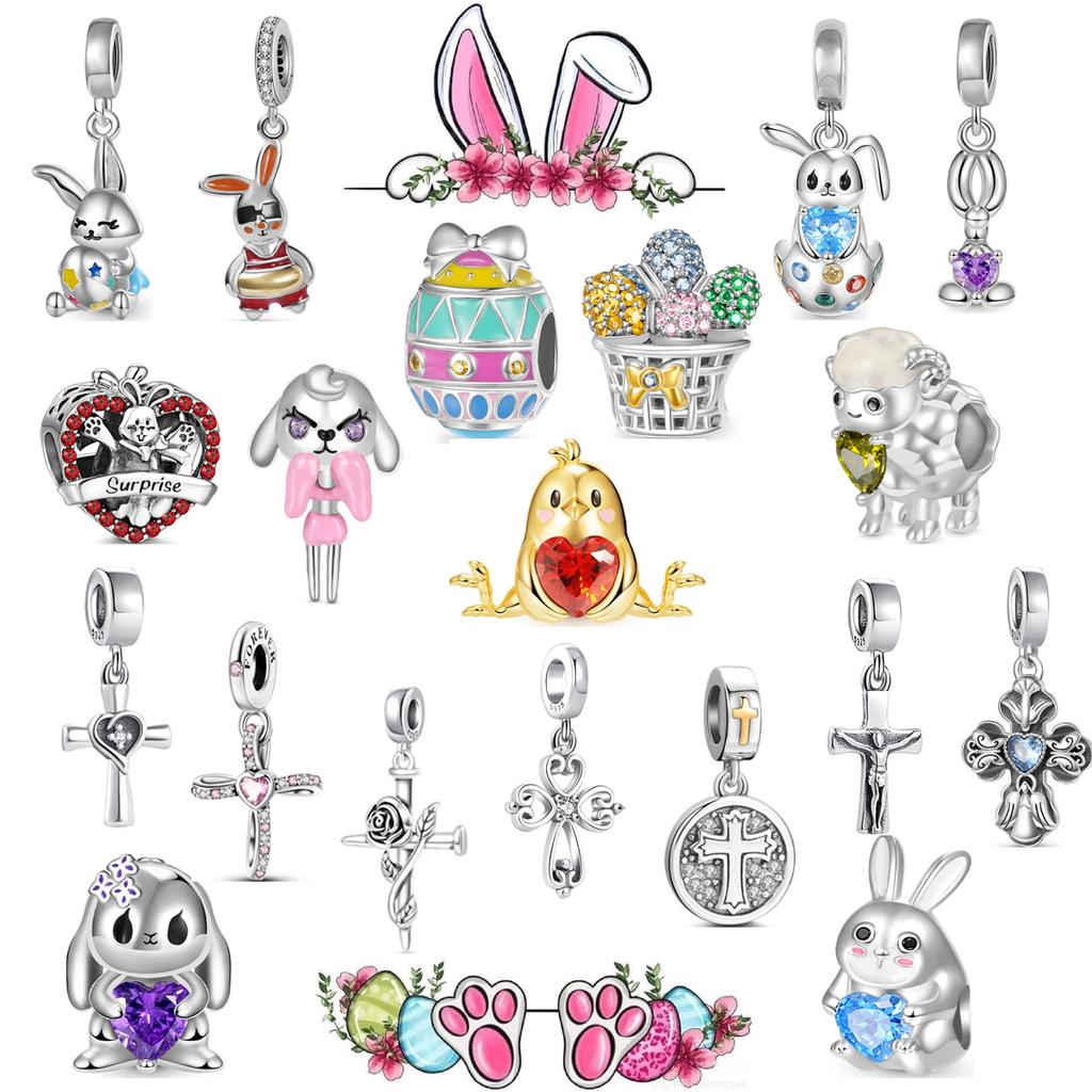 Dazzlingcopper Hollow Dangle Easter Rabbit Egg Charm Fit Original Bracelet Trinket Pandent And Elegant Jewelry Gift