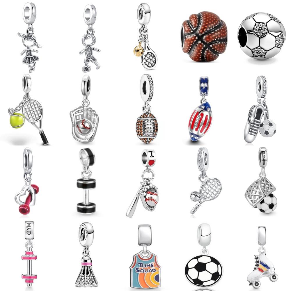 Copper Sports Series Charm Football Volleyball Tennis Basketball Dumbbell Pendant Fit Bracelet Diy Exquisite Jewelry