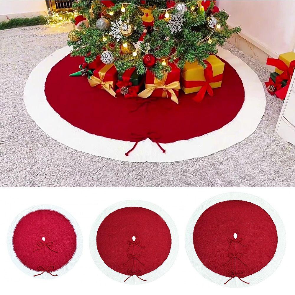Knitting Christmas Tree Skirt Christmas Decoration Supplies 62cm Knitted Christmas Tree Skirt Red White Color Reusable