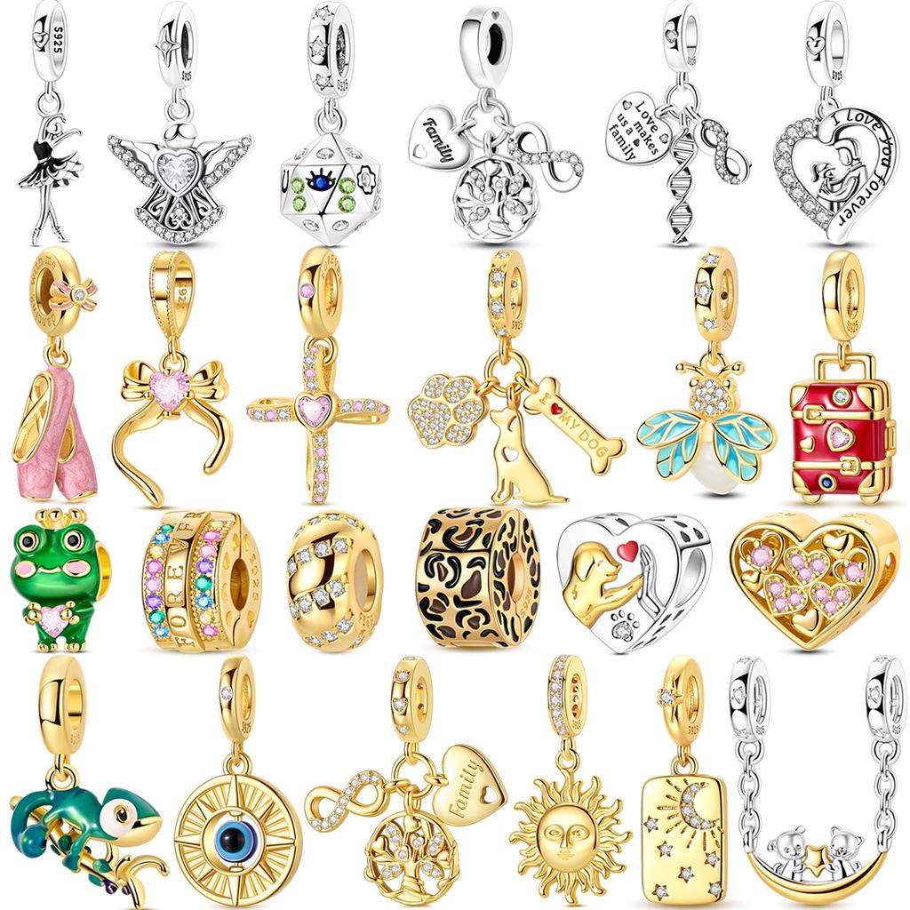 Original Copper Golden Pets Charms Bead Colorful Zirconium Clover Angel Heart Dangle Fit Bracelet Diy Jewelry Gift