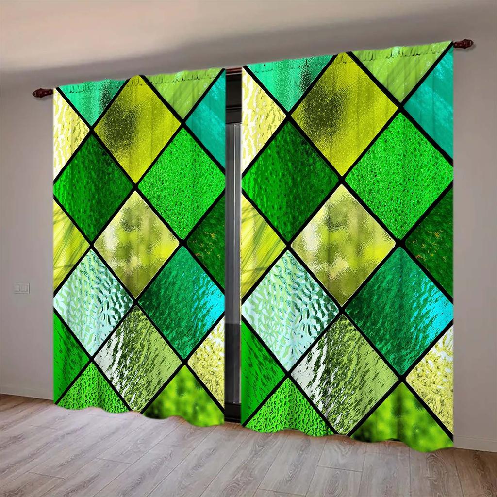 2-Panels Green Diamond Shaped Glass Window Curtains Distinctive Printed Curtains Suitable for Gifting To Family and Friends