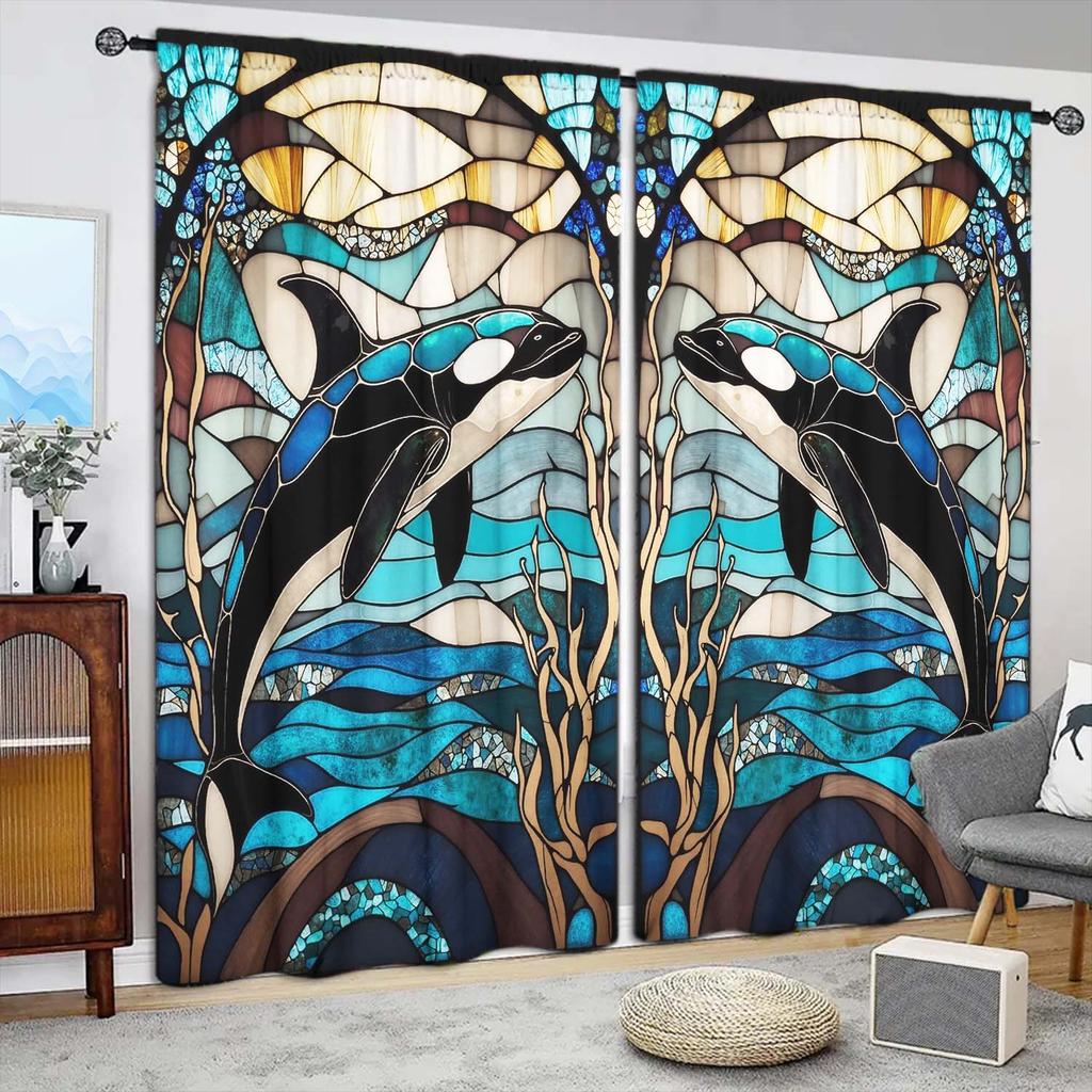 2 Panels Ocean Glass Killer Whale Pattern Curtains Distinctive Printed Curtains Suitable for Gifting To Family and Friends
