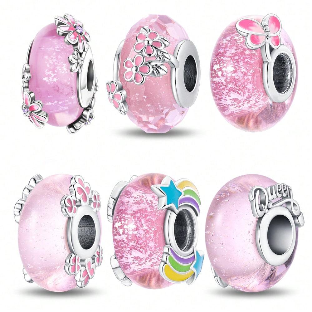 Charms Plata Copper Colors Pink Glass Beads Bead For Original Bracelet Diy Beads Charms Jewellery Making Gift For Women Styfne